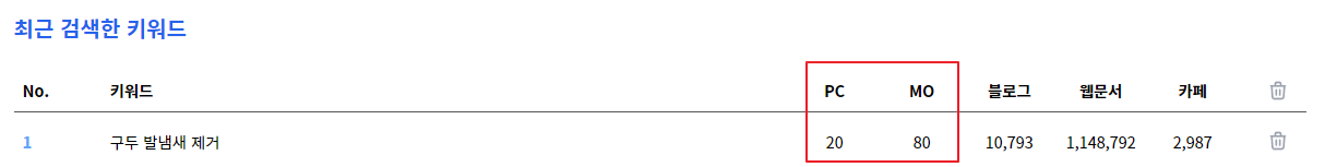 구두발냄새제거라는 키워드를 찾아보았고 검색량이 아닌 클릭률 0 제가 필요한 부분은 나오지 않습니다.
