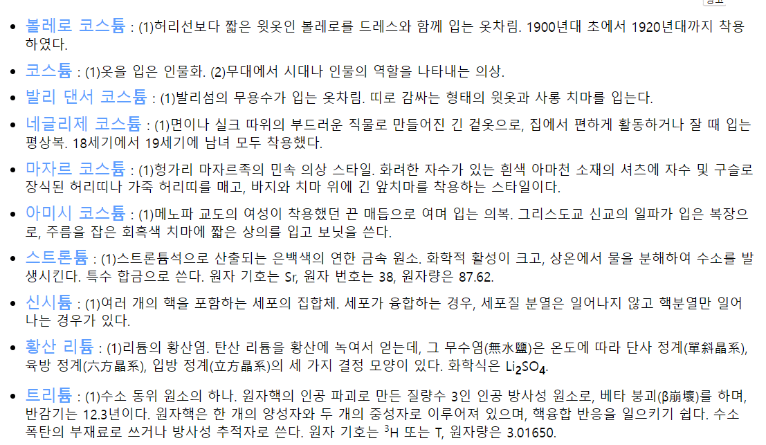 리튬, 스트론튬, 트리튬, 염화 리튬, 탄산리튬, 코스튬, 아카데믹 코스튬, 엘리자베션 코스튬, 포스코스튬, 볼레로 코스튬 등 알아두면 한방단어로 공격하기 쉽습니다.